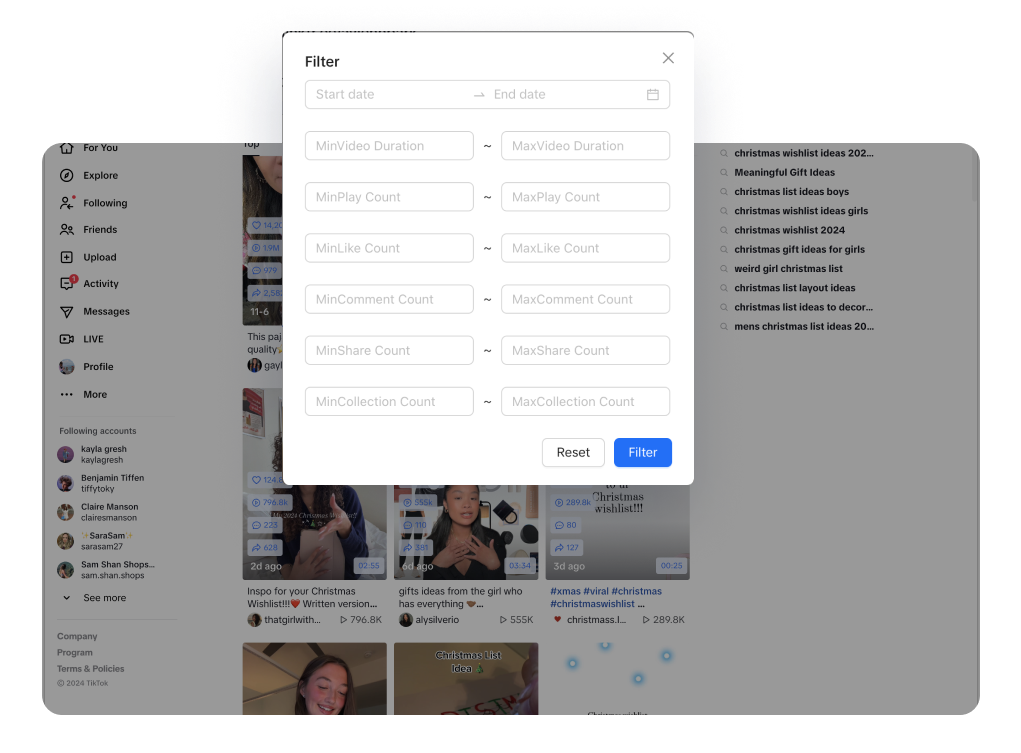 Multiple Filter Criteria: Post Time/Views/Likes/Comments