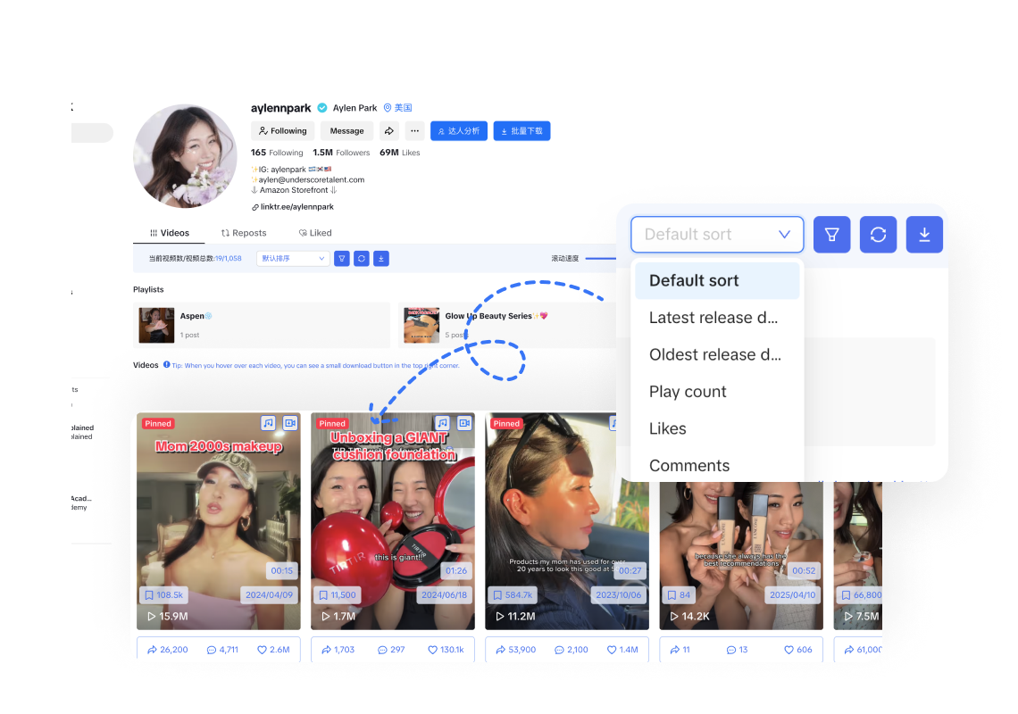 Multiple Sorting Options by Views/Likes/Comments or Other Metrics